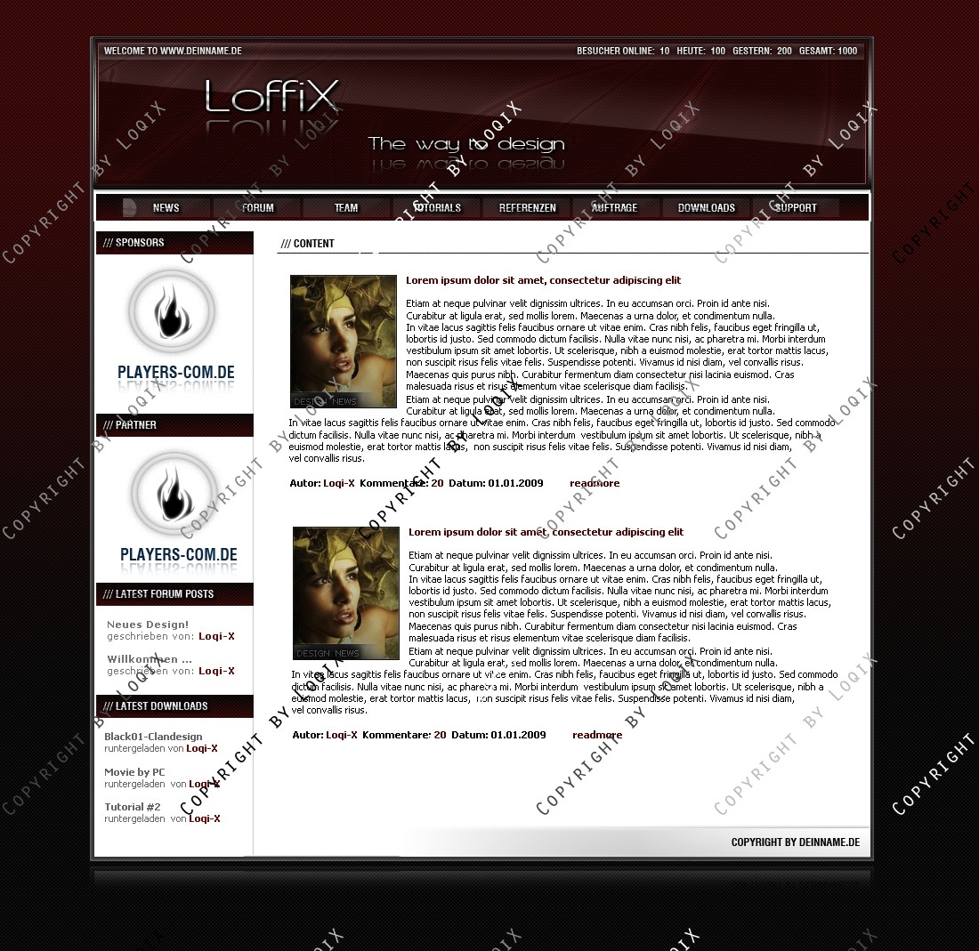 Hinweis: Hierbei handelt es sich nur um das Design, eine Anpassung an ein CMS-System ist nicht im Preis enthalten!