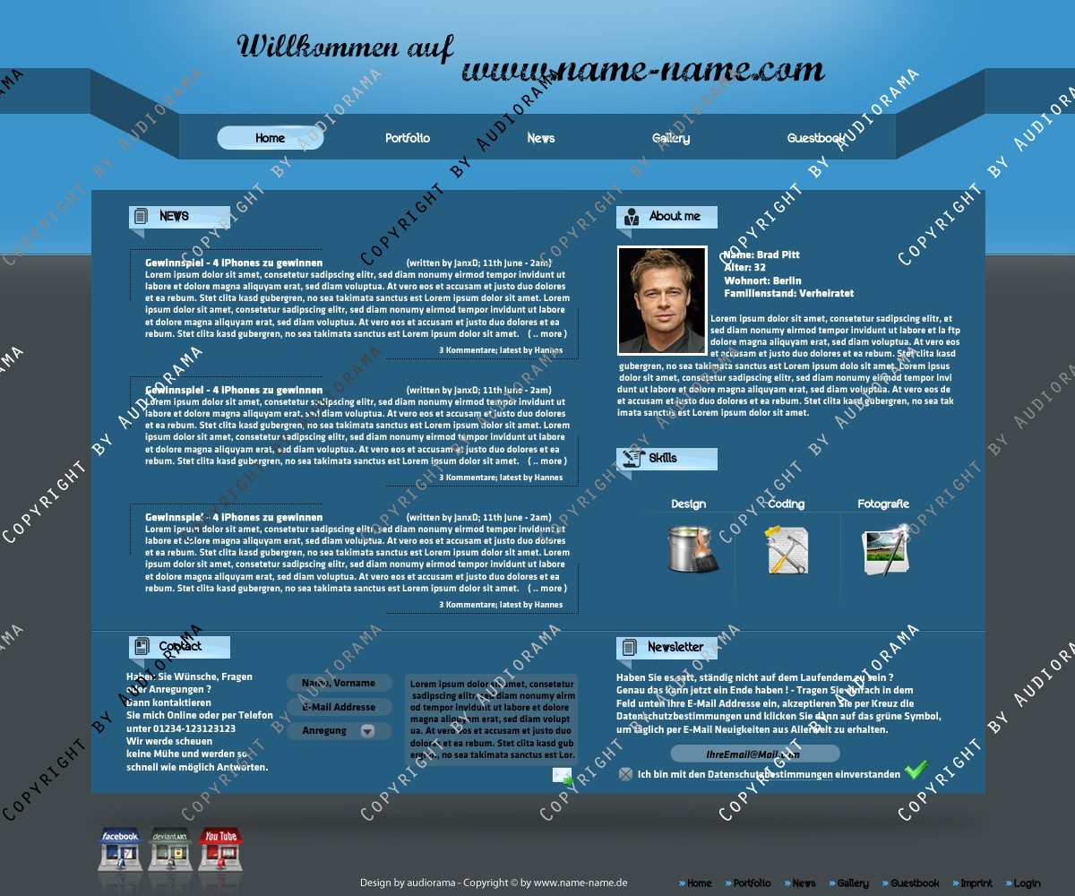 Hinweis: Hierbei handelt es sich nur um das Design, eine Anpassung an ein CMS-System ist nicht im Preis enthalten!