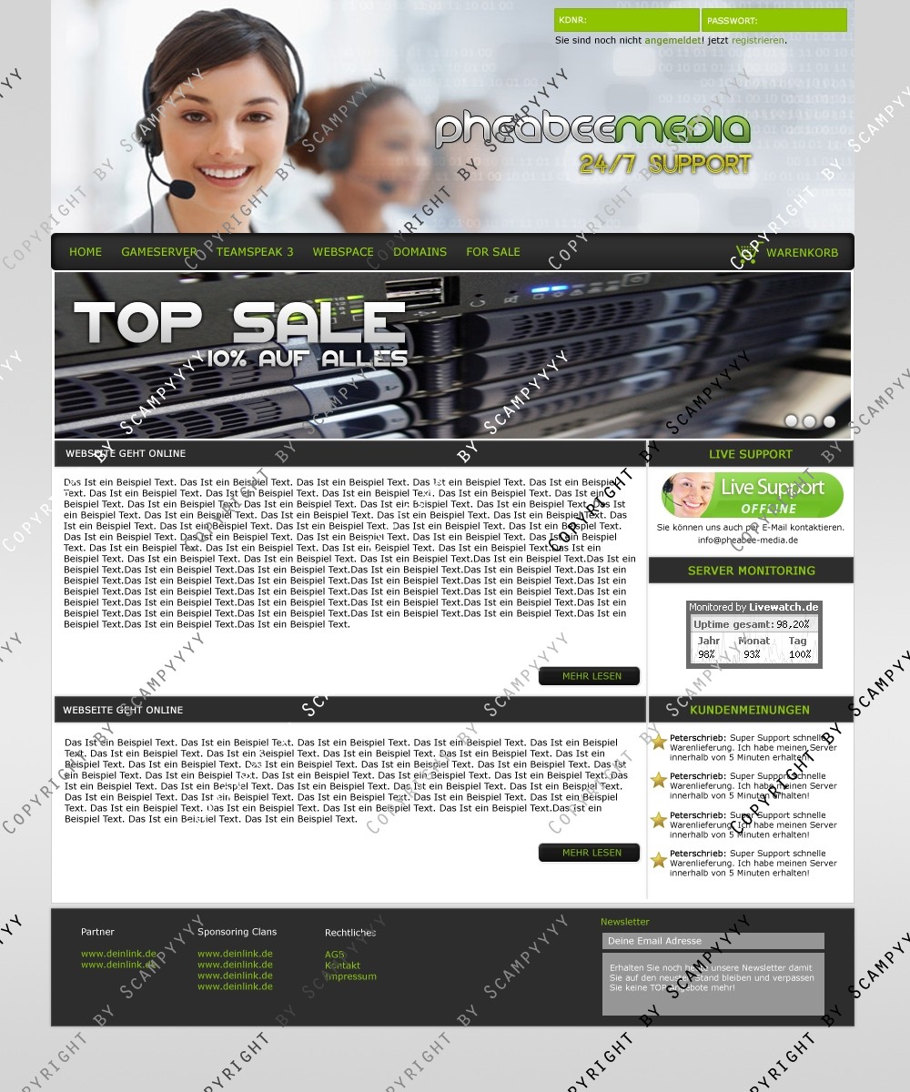 Hinweis: Hierbei handelt es sich nur um das Design, eine Anpassung an ein CMS-System ist nicht im Preis enthalten!