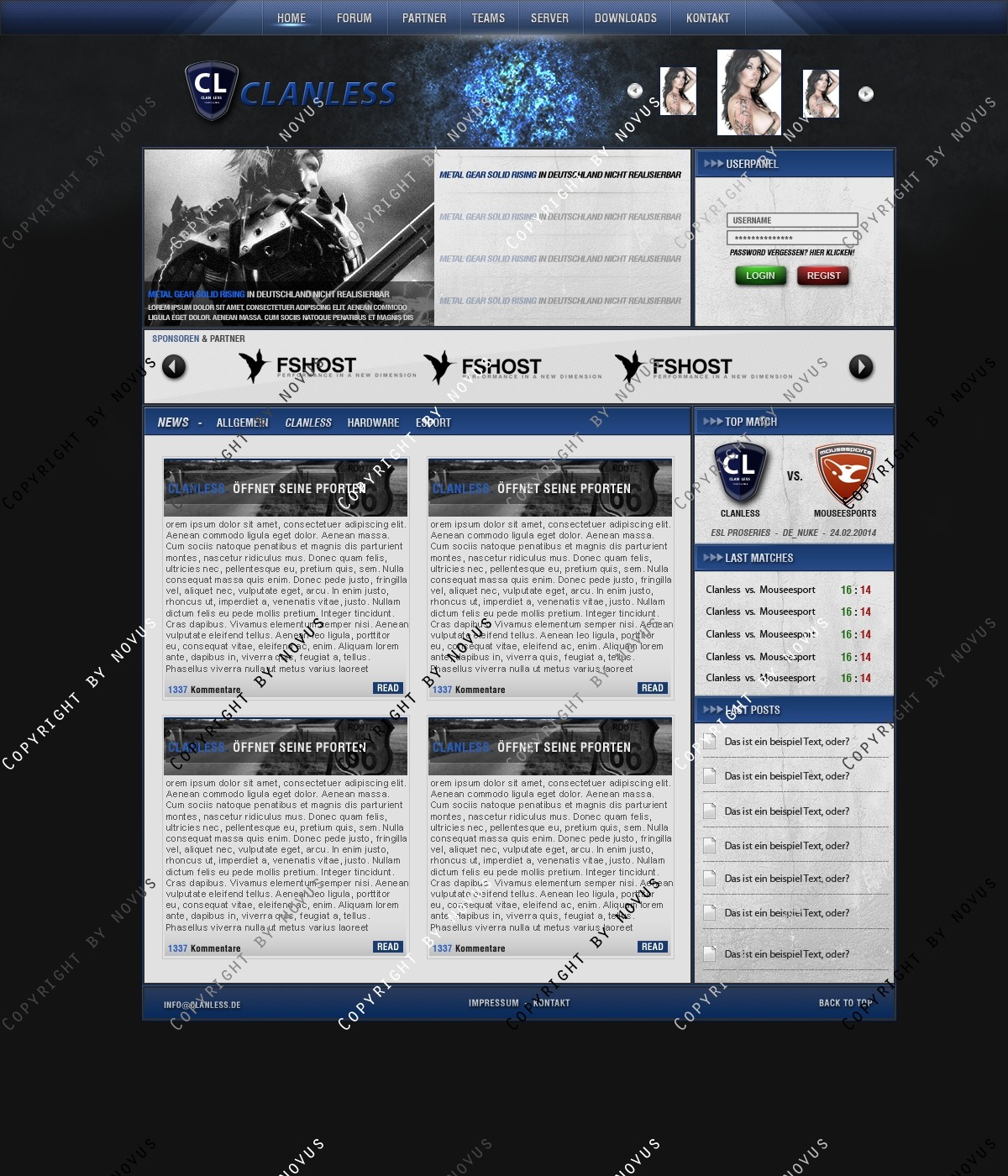 Das Logo ist nur zur Demonstration und wurde nicht von mir erstellt. Hier könnt ihr euch das Logo kostenlos runterladen: http://www.clandesigns.de/logo/3298/premium-clan-logo/