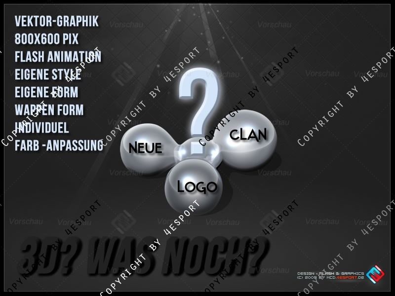 Wir redesignen eure EIGENE ALTEN CLAN LOGOS, ODER ERSTELLEN EINE NEUES INDIVIDUELLE CLAN LOGO , als Vektor wenn unter Zusatzleitungen mit Bestellt wurde, und in 3D (nie wieder verpixelt, unscharf) auf Wunsch auch Animiert in FLASH (Aufpreis)