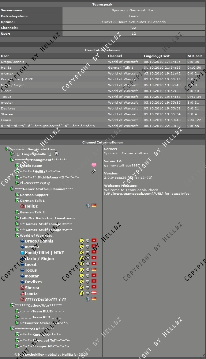 Ich biete den MOD nicht Hauptsächlich unter meinem Namen an, da der Viewer also das Grundscript von Psychokiller ist, der auch das einzige im mom geupdatede Teamspeak Webinterface codet.