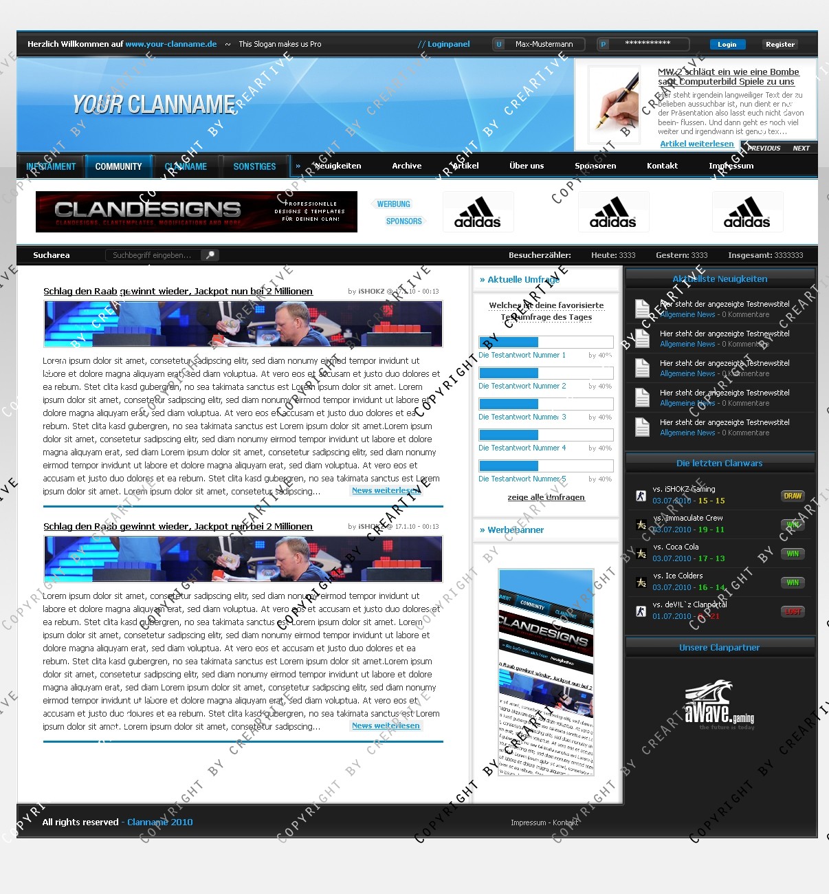 Du hast noch keinen Account auf ClanDesigns.de? Dann kannst du dich hier kostenlos registrieren!