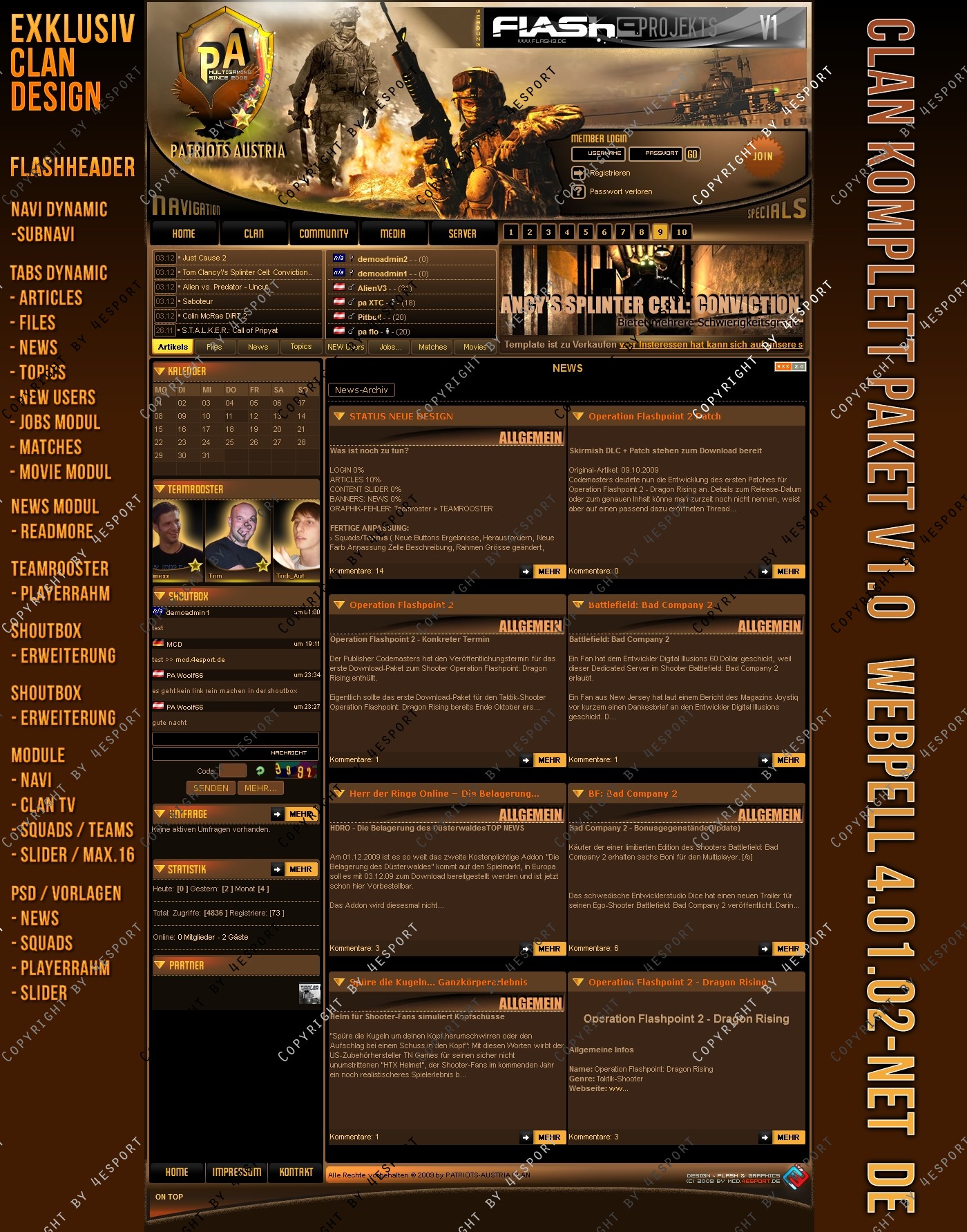 Design PSD Inkl. : News-Vorlage, Squads-Teams-Vorlage, Slider-vorlage, PA-Logo, Header- Links (hinter Logo der graphik)