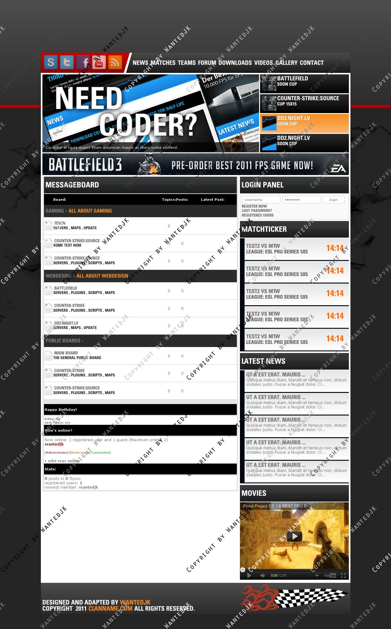 Include templates - News , Forum , Profile , Matches , Members