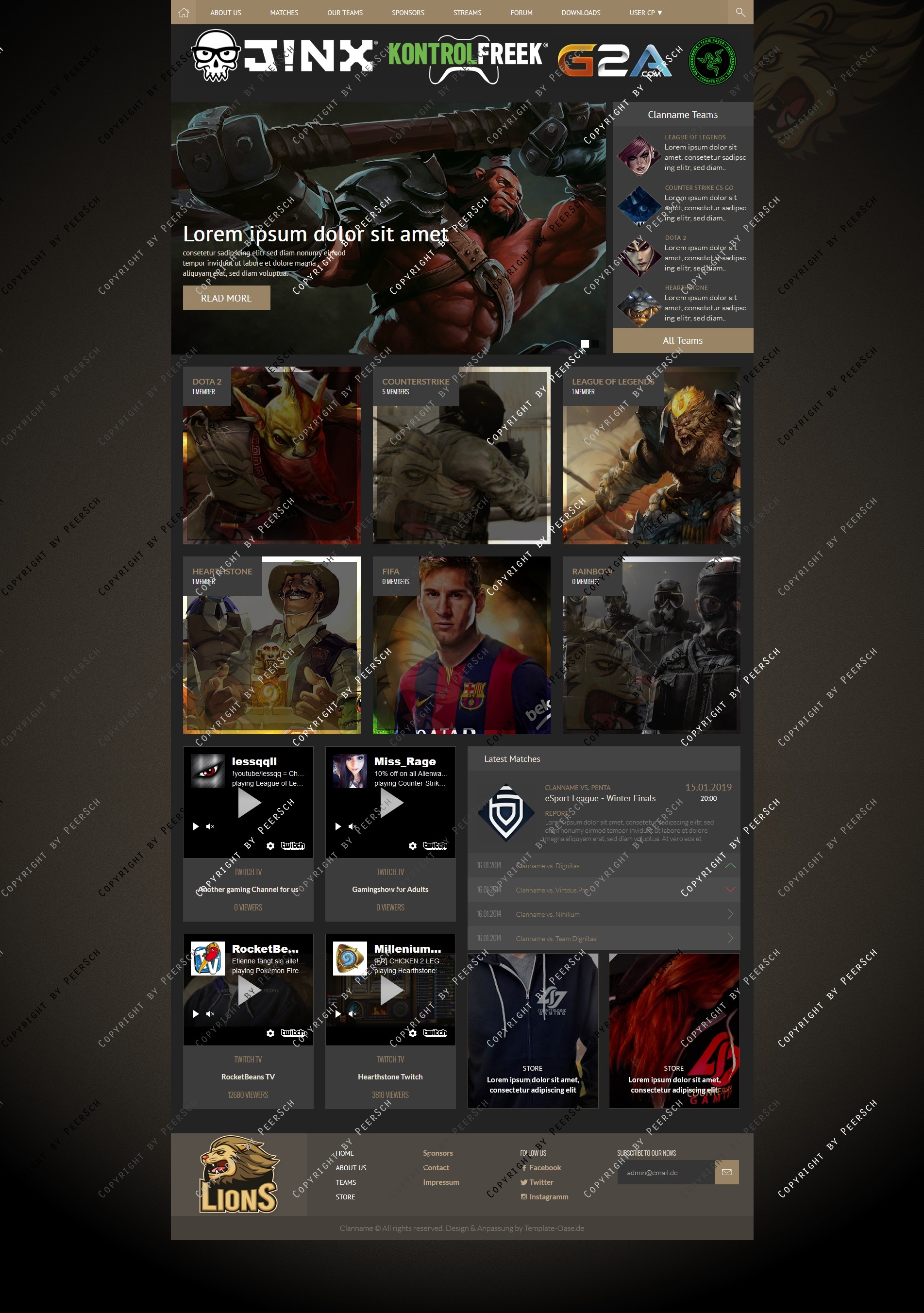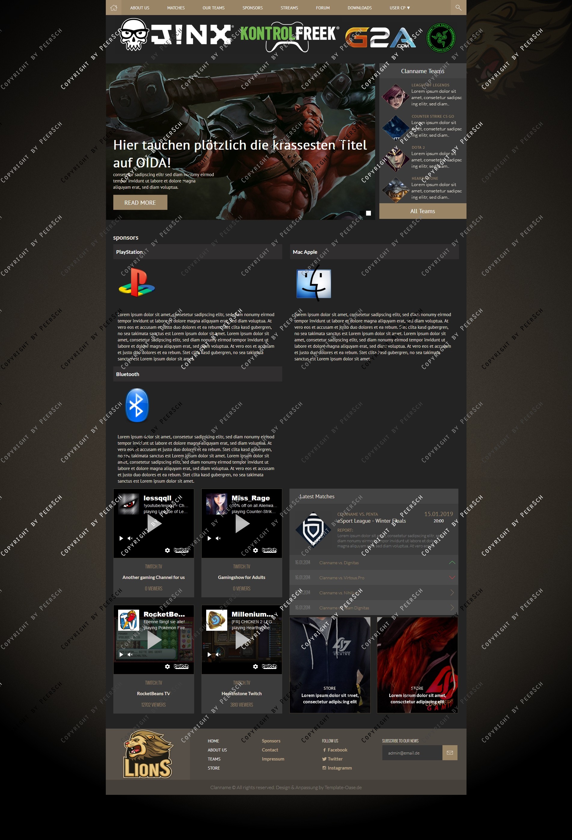 Im Preis mit inbegriffen sind außerdem die angepassten Unterseiten: Sponsoren, Squads, Squaddetail, News, Newscomments, Profil und Streams!